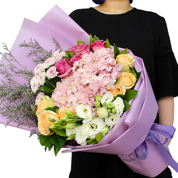 | 包装 | 粉紫色牛皮纸扇形包装,格子缎带束扎 |