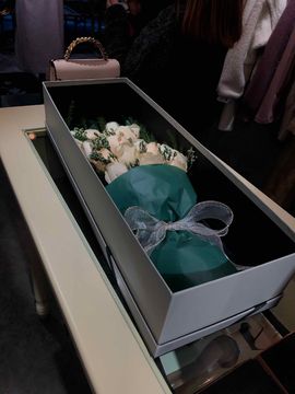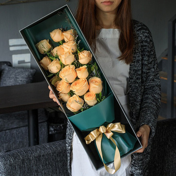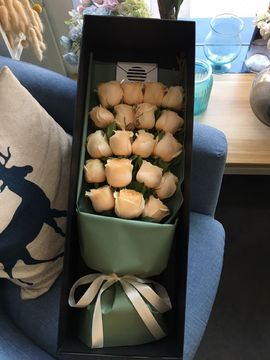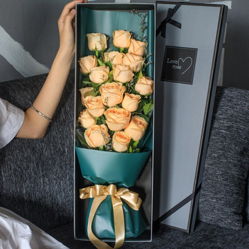 | 材料 | 19枝精品香槟玫瑰,情人草间插,栀子叶丰满点缀 |