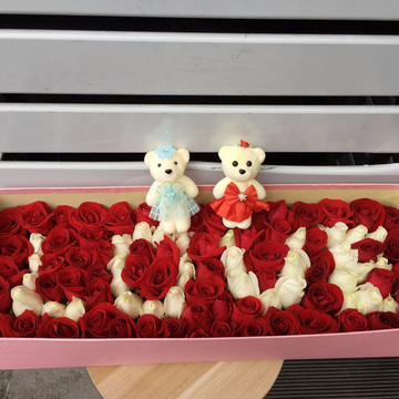 | 材料 | 精选红玫瑰、白玫瑰99朵,白玫瑰LOVE造型 |