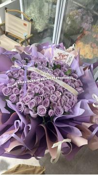| 包装 | 内衬紫色牛奶棉,外围紫色欧雅纸,蝴蝶结束扎,如图装饰蝴蝶结 |
