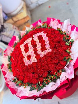 | 材料 | 粉色康乃馨33支,红色康乃馨119支按图制作,红豆围边,表面彩灯装饰 |