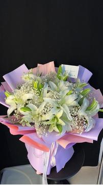 材料 | 9枝多头白百合,搭配白色满天星丰满点缀。 |