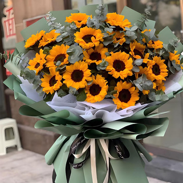 | 材料 | 19朵向日葵,搭配尤加利叶丰满间插 |