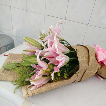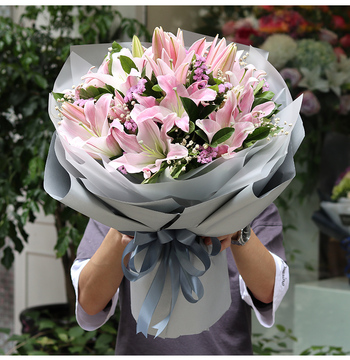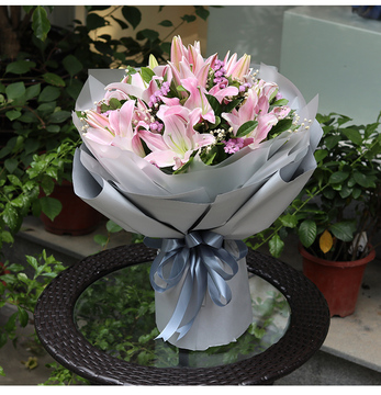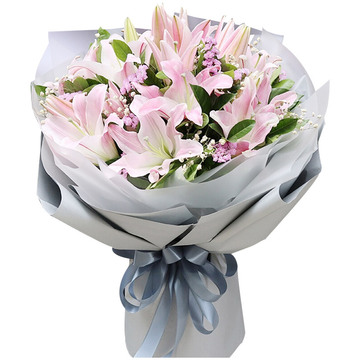 | 材料 | 8支多头粉百合花束,栀子叶、石竹梅(或粉色满天星)搭配。 |