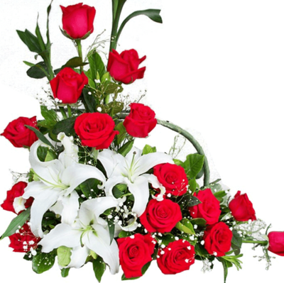 | 材料 | 精心挑选16朵红玫瑰,3枝香水百合,2枝富贵竹,满天星绿叶点缀。 |