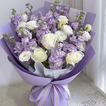 | 材料 | 11支紫罗兰,3支白玫瑰,搭配白色洋桔梗丰满间插 |