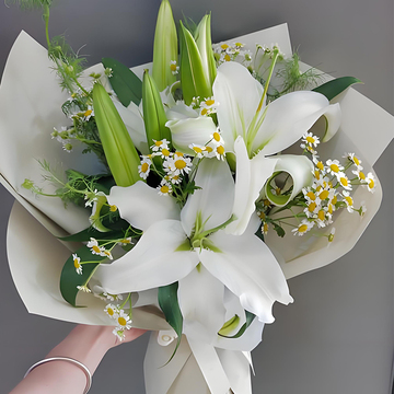 材料 | 3支多头白百合搭配小雏菊丰满间插 |