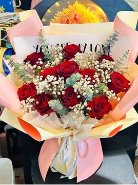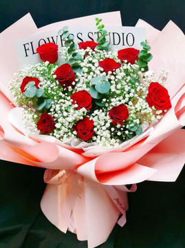 | 材料 | 11枝红玫瑰,搭配尤加利叶白色满天星丰满间插。 |