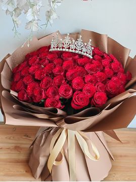 | 材料 | 99支红玫瑰,表面皇冠装饰 |