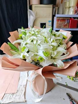 材料 | 7支多头白百合,搭配澳梅点缀 |