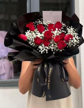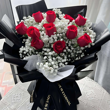 材料 | 11支红玫瑰,搭配白色满天星丰满间插 |
