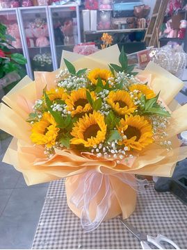 材料 | 8朵向日葵,搭配白色满天星、尤加利叶丰满间插 |