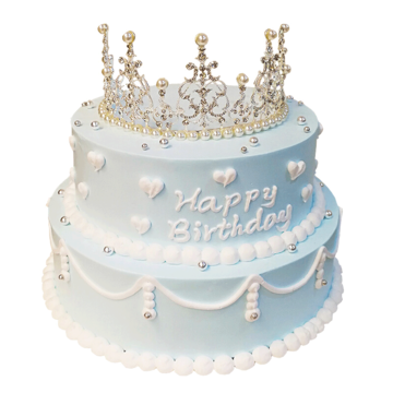 | 材料 | 双层圆形新鲜蛋糕胚,水果夹心奶油,搭配精品皇冠装饰一个 |