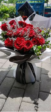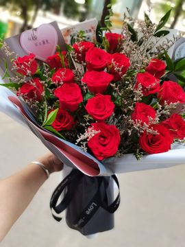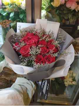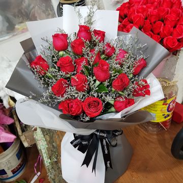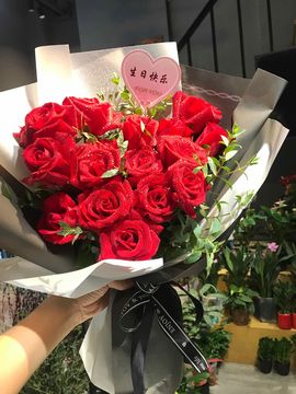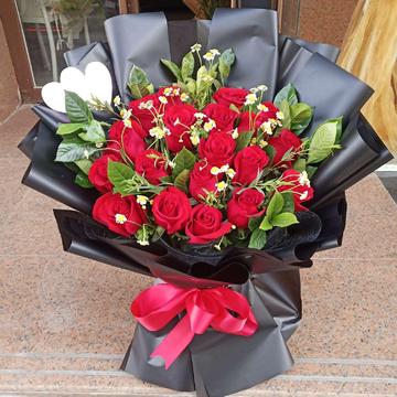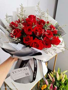 | 材料 | 19朵精品红玫瑰,情人草绿叶间插 |