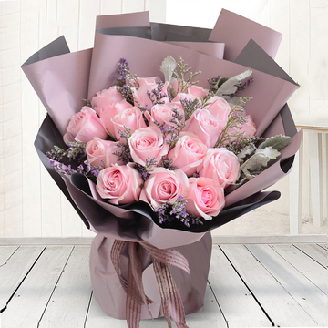 | 材料 | 19朵戴安娜粉玫瑰,情人草和银叶菊间插搭配 |