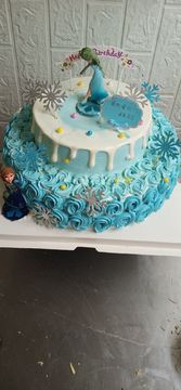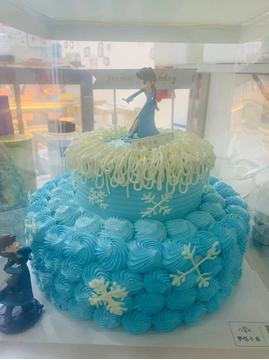 | 材料 | 圆形双层卡通鲜奶蛋糕,搭配冰雪奇缘爱莎公主卡通公仔装饰 |