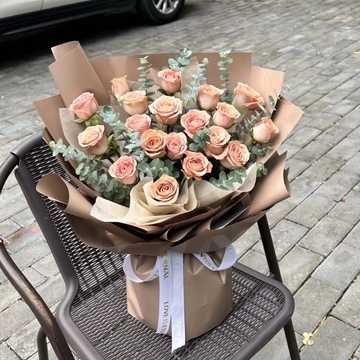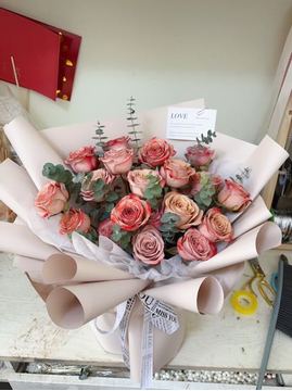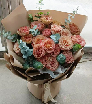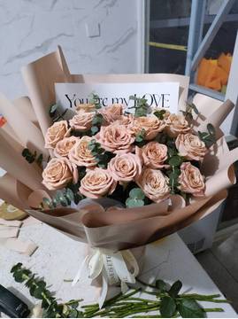 | 材料 | 19枝卡布奇诺玫瑰,尤加利叶间插 |