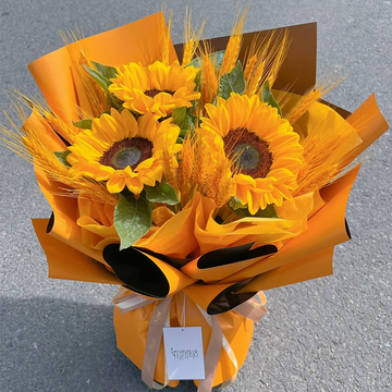 | 材料 | 3朵向日葵,仿真大麦、大麦 (约30枝麦穗)。——大麦花束 |