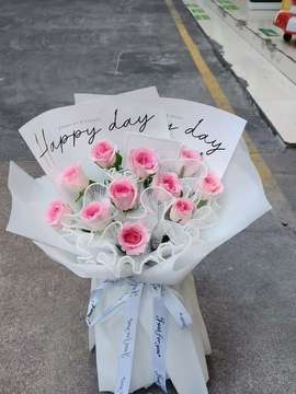 由于鲜花包扎各地的花艺师不同,可能在花束的形式和搭配上与图片不完全一致,但我们保证鲜花的主花材品种、新鲜程度、数量、颜色与说明一致,谢谢。