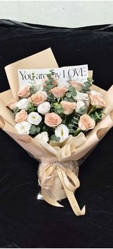 材料 | 11朵卡布奇洛,4枝多头白色洋桔梗,尤加利叶间插 |