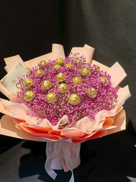 材料 | 19颗费列罗巧克力,粉色满天星间插丰满(巧克力花束) |