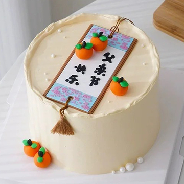 | 材料 | 圆形鲜奶蛋糕,卡通柿子装饰,父亲节书签装饰。 |
