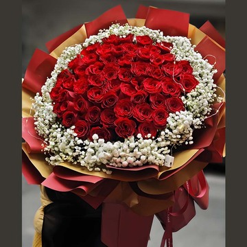 材料 | 52支红玫瑰,白色满天星围边,下单即1灯串 |