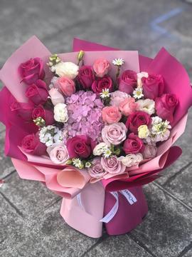 | 包装 | 浅粉色+玫红色欧雅纸层叠包装,蝴蝶结丝带束扎 |
