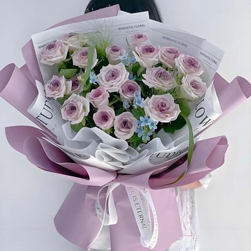 | 材料 | 19支乌梅子酱玫瑰(曼塔喷色),搭配蓝星花、喷泉草丰满间插 |