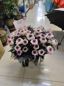 | 材料 | 33支乌梅子酱玫瑰(曼塔喷色),表面一串珍珠装饰 |