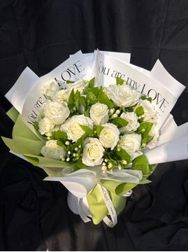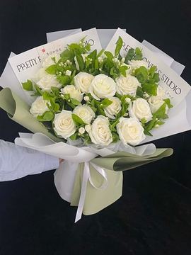 | 材料 | 19支白玫瑰,搭配茉莉花丰满间插 |