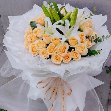 | 花语 | 香槟玫瑰的温润如釉,百合似白瓷,质感与浪漫共生 |
