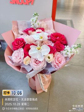 | 包装 | 内衬玫红色+粉色网纹纸,外围粉色欧雅纸,蝴蝶结束扎 |