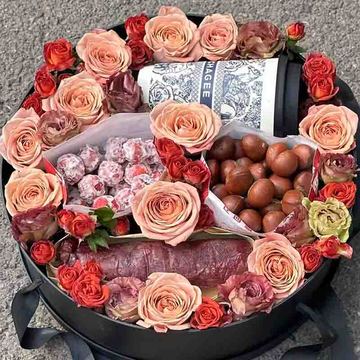 | 材料 | 11支卡布奇诺玫瑰,暖冬四件套:1杯霸王茶姬奶茶,250g山楂球,250g糖炒栗子,1个烤红薯,搭配巧克力多头泡泡、茶色洋桔梗丰满间插 |