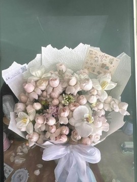 | 包装 | 内衬蓝色蜂窝纸,外围白色梦幻纸,蝴蝶结束扎 |