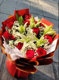 爱与祝福鲜花蛋糕组合 8寸