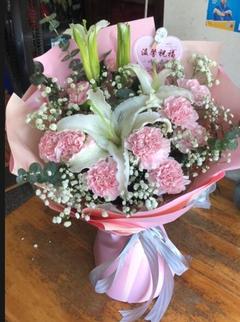 爱与祝福鲜花蛋糕组合 8寸