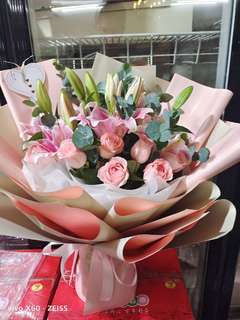 爱与祝福鲜花蛋糕组合 8寸