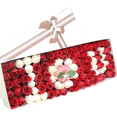 73朵红玫瑰,26朵白玫瑰,1颗苹果